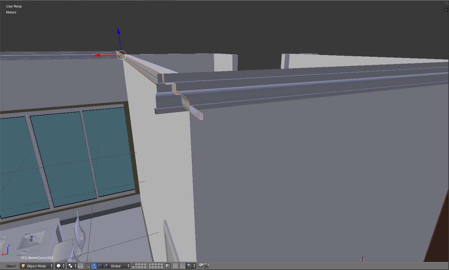 Hola, no sé cómo unir las dos molduras de la esquina de este apartamento ¿Alguien me puede ayudará ¿Existe alguna manera sencilla de hacer esquinas de molduras en Blender?