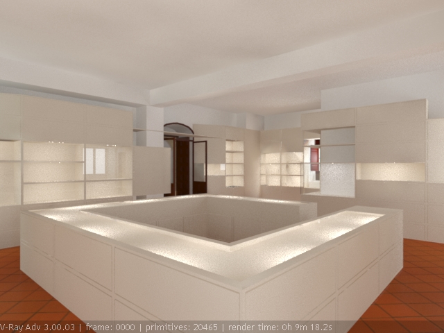 Estoy teniendo un problema menor con algo que no había hecho nunca, que es iluminar una serie de vitrinas (sospecho que el problema reside en que las luces están muy próximas a los objetos y los cristales). Y digo menor porque ha fin de cuentas, es algo que he solucionado a lo bruto subiendo la depuración del Irradiance map y metiendo alisado (antialiasing) a toda caña. Pero claro, eso me eleva un huevorro los tiempos de render (a entre 3h, y 5h, o más, según la imagen), lo cual me hace plantearme que quizá hay algo que no estoy haciendo muy bien, ya que los renders sólo con Luz natural salen bastante bien, tal y como podéis ver en la muestra qué os deja. He probado a subir las subdivisiones de las luces, los materiales, cambiar las luces (que son fotométricas) por Vray IES, emular la intensidad con la luz estándar de Vray y nada, que no hay manera y ya no sé qué hacer. Y por eso recurro a la comunidad. Si alguien tiene alguna idea para poder librarse del ruido tan horroroso que se observa en la imagen, pues que me ilumine, por favor. Un saludo y gracias por adelantado por vuestro tiempo y atención ;-].