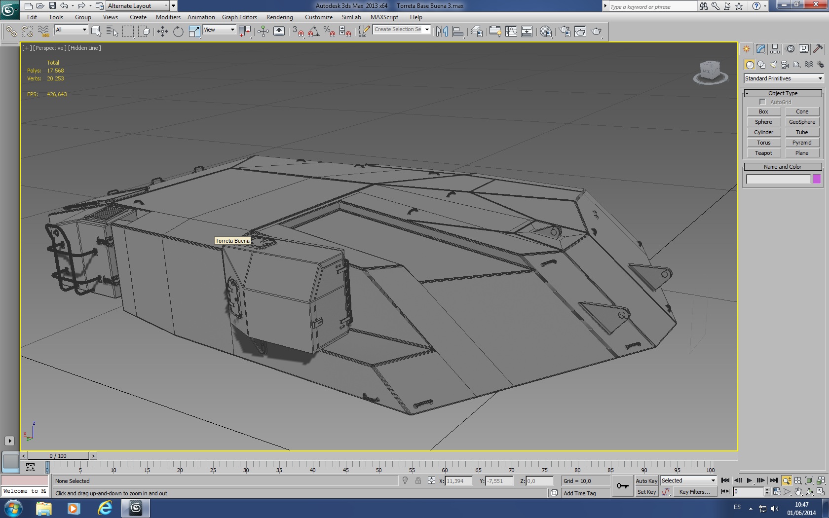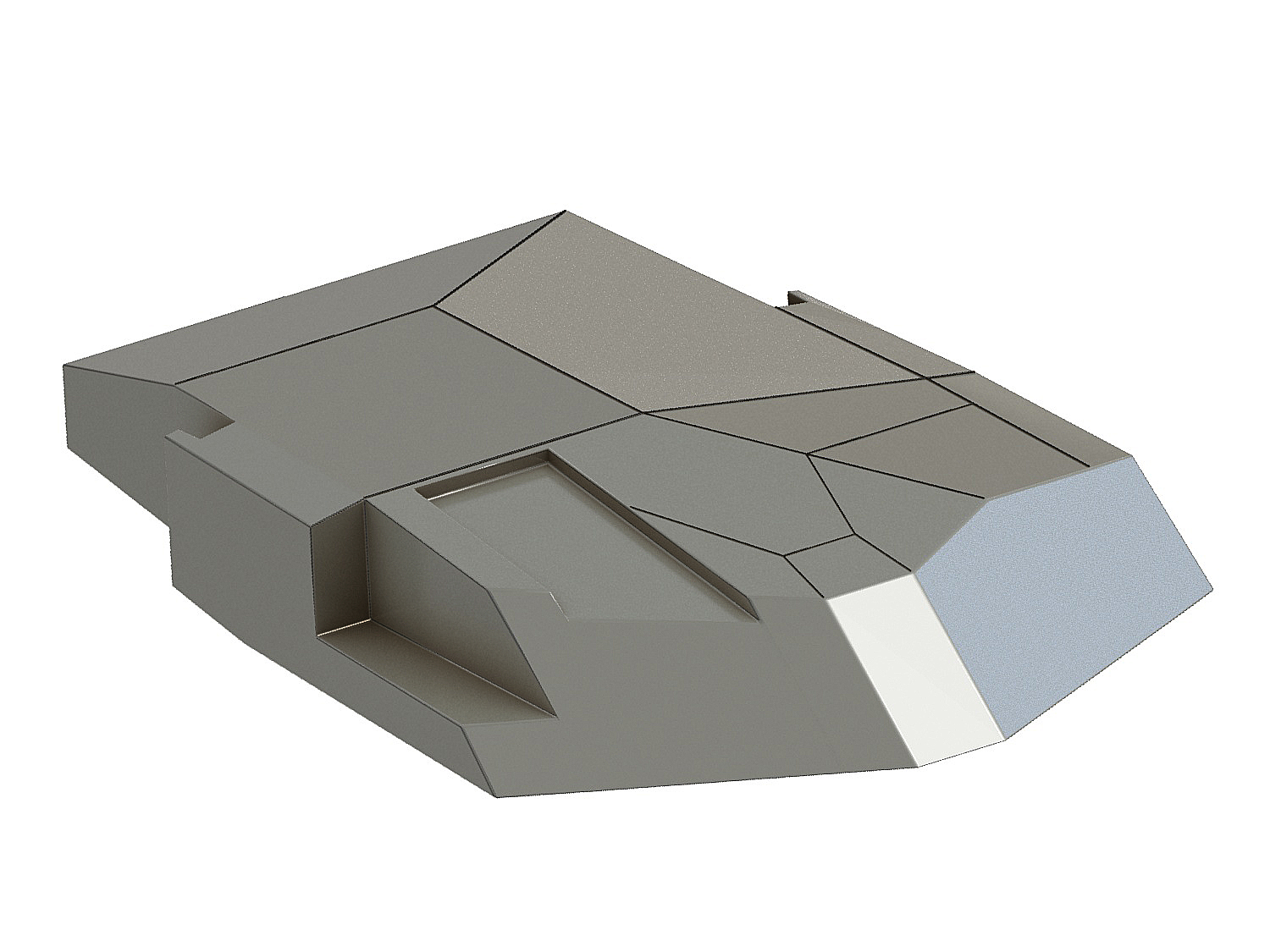 Ya avisé que esa torreta traería cola, esa de la imagen no ha valido para nada el esbozo. Me salían caras con aristas por todos los lados, intentaba solventarlo con el autosmooth, pero había tantas que me acababa pareciendo un globo, y como soy perfeccionista pues la he rehecho una y otra vez, hasta qué me ha salido, cuatro días después. No está mal. La barcaza me llevo seis meses.