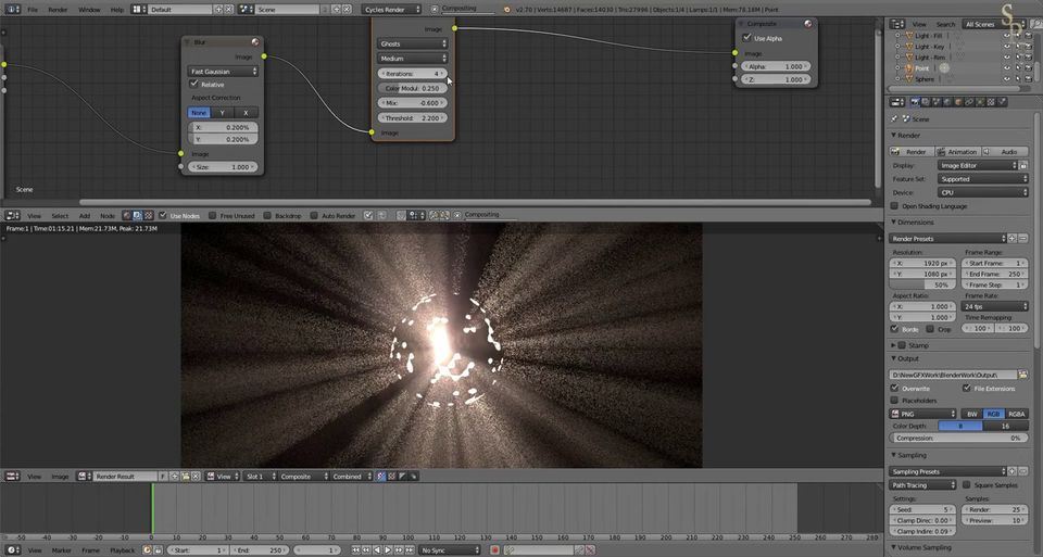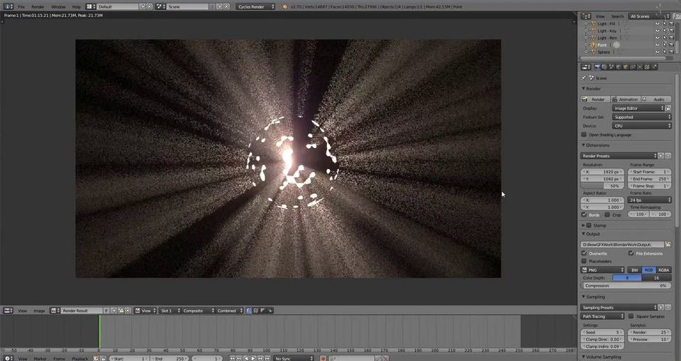 El siguiente video tutorial en inglés muestra como emitir rayos de luz volumétrica usando Cycles en Blender 2.70, el tutorial ha sido creado por Sardi Pax.