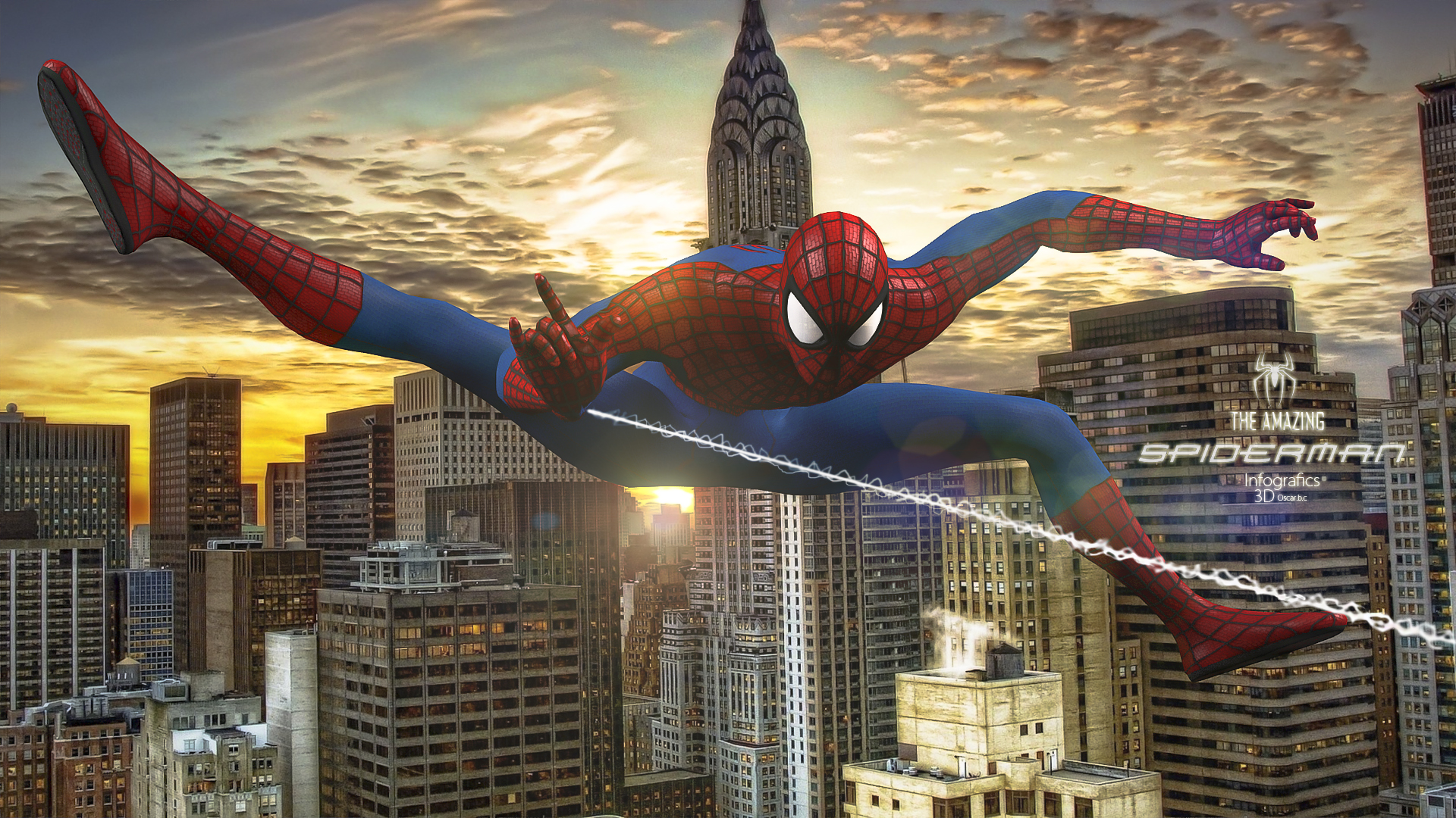 En general lo veo bien. A mi forma de ver, te aconsejaría ponerle otro ángulo que no sea tan frontal; un poco más de tres cuartos creo que le iría mejor a la imagen. Ahora mismo, la parte de torso y piernas se ve un poco raro, y si te fijas, la mano que dispara la tela de araña, no se llega a apreciar del todo bien, sobre todo el dedo gordo de la mano. Saludos.