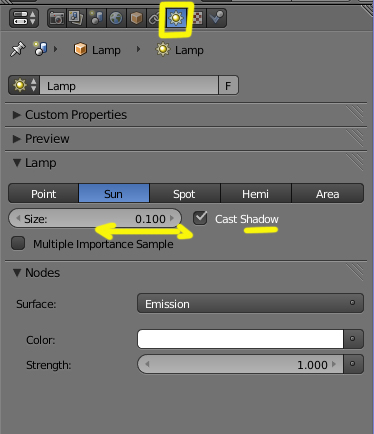 En Cycles las lámparas puedes controlarlas con SIZE, para hacer la sombra más dura o más suave (súbelas para qué se vean menos).