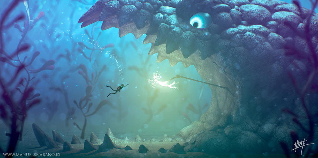 Muchas gracias por las observaciones, tienes razón. Para la estructura qué sujeta la luz utilicé referencias de algunos peces abisales, pero sí que podría haber quedado mejor con algo más orgánico. Con esta imagen intenté hacer algo más estilizado de lo que suelo diseñar, por lo que sobre todo intenté experimentar, aunque como suele pasar cuando se ve una imagen después de un tiempo, cambiaría alguna que otra cosa.
