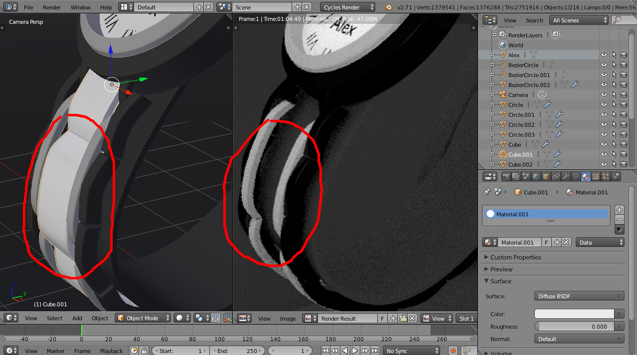 Tengo este reloj, parece todo estar bien, pero al tratar de renderizar con Cycles cierta parte queda transparente, Que hago?