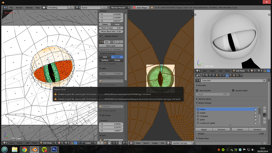 Hola, estoy texturizando, por el momento el ojo, en Blender render.