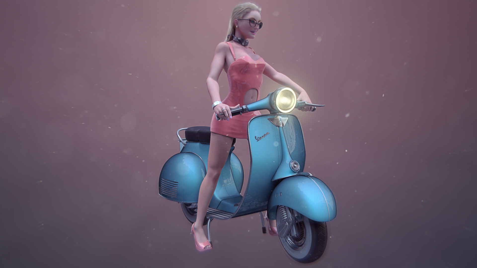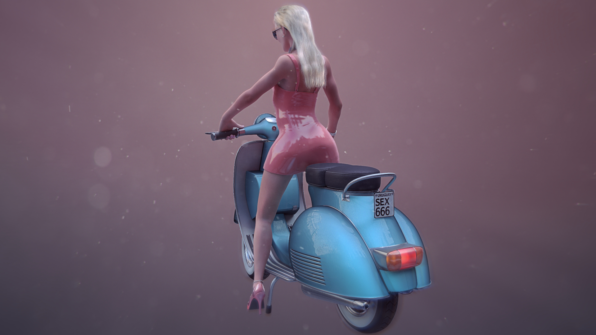 Buenas, vi tu trabajo en el mensaje de proceso, y el trabajo final muy bueno, fantástico modelado de la vespa y la chica. La chica esta modelada a partir un modelo real? Un saludo.