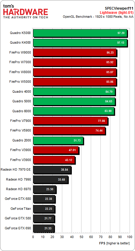 En Maya, LightWave, Catia, hasta la Quadro más baja, supera a la GeForce más bestia: