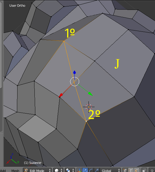 Seleccionas DOS vértices de la cara y letra J (Connect).