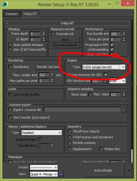 El caso es que esto solo me ocurre si tengo activado en la configuración del Vray RT en el apartado Engine la opción CUDA Archivo adjunto 201574