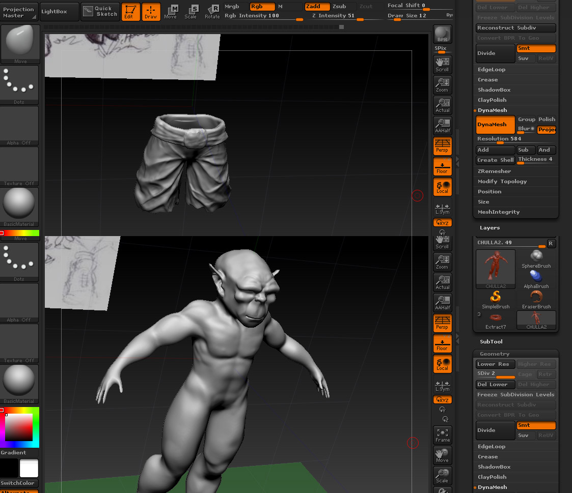 Hola, vaya no se me había ocurrido eso, aún que ya lo había hecho con figuras que trae el ZBrush por defecto, muy sencillo y efectivo, me ha servido completamente te lo agradezco.