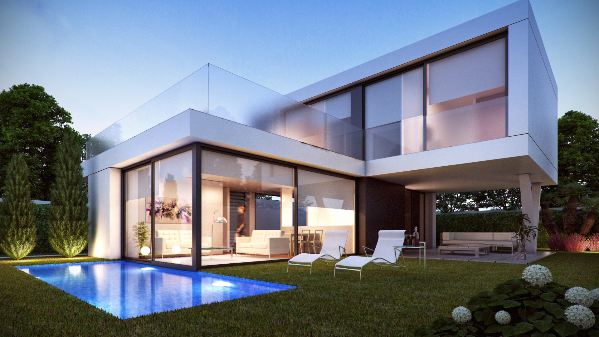 Es verdad, no las hay, en realidad son unas escaleras que están dentro de la piscina, no son las típicas de metal. La infografía 3d la comencé con unos planos muy básicos que me paso el arquitecto donde a él también se le pasó colocarlas y yo ni lo pensé.