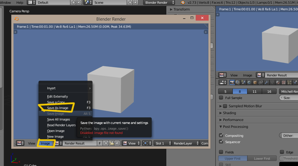 De todas formas, si has hecho el render, para verlo, puedes abrir una ventana de UV/Image Editor y seleccionar de la lista el Render Result.