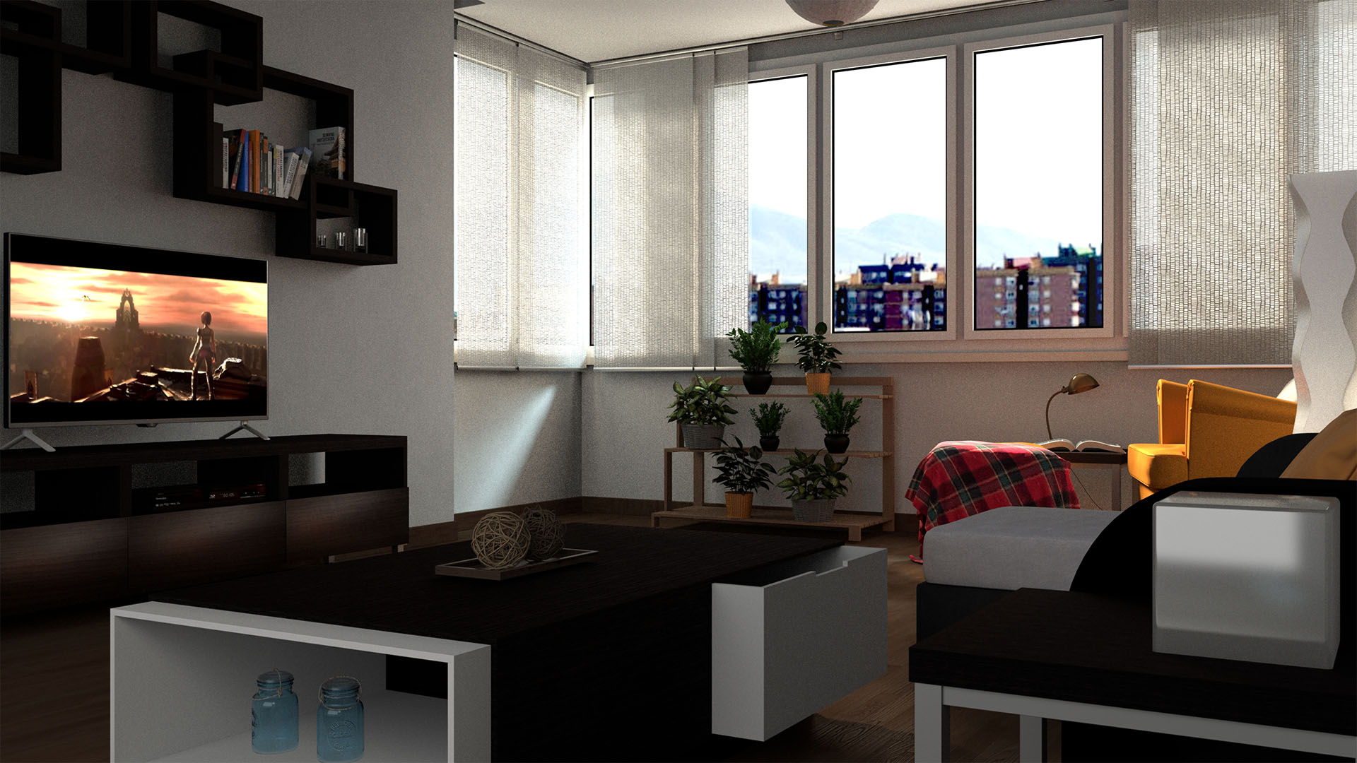 Soliman, muchas gracias por comentar, no había pensado lo de la televisión, probaré a ponerle esa luz a ver cómo queda y no me alarga mucho el tiempo de render y ahora que lo pienso meteré también un acabado más Glossy a la pantalla a ver qué tal.