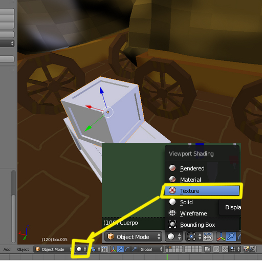 Estoy poniendo texturas a diferentes objetos de una escena en Blender y no entiendo porque hay objetos a los que la textura se ha dejado de mostrar. Tienen el material, su mapa UV está situado sobre la imagen y sin más han dejado de verse en la escena, ¿alguien sabe porque pasa esto? En la imagen de ejemplo son 2 cajas que he duplicado con alt+d, no sé si tendrá algo que ver.