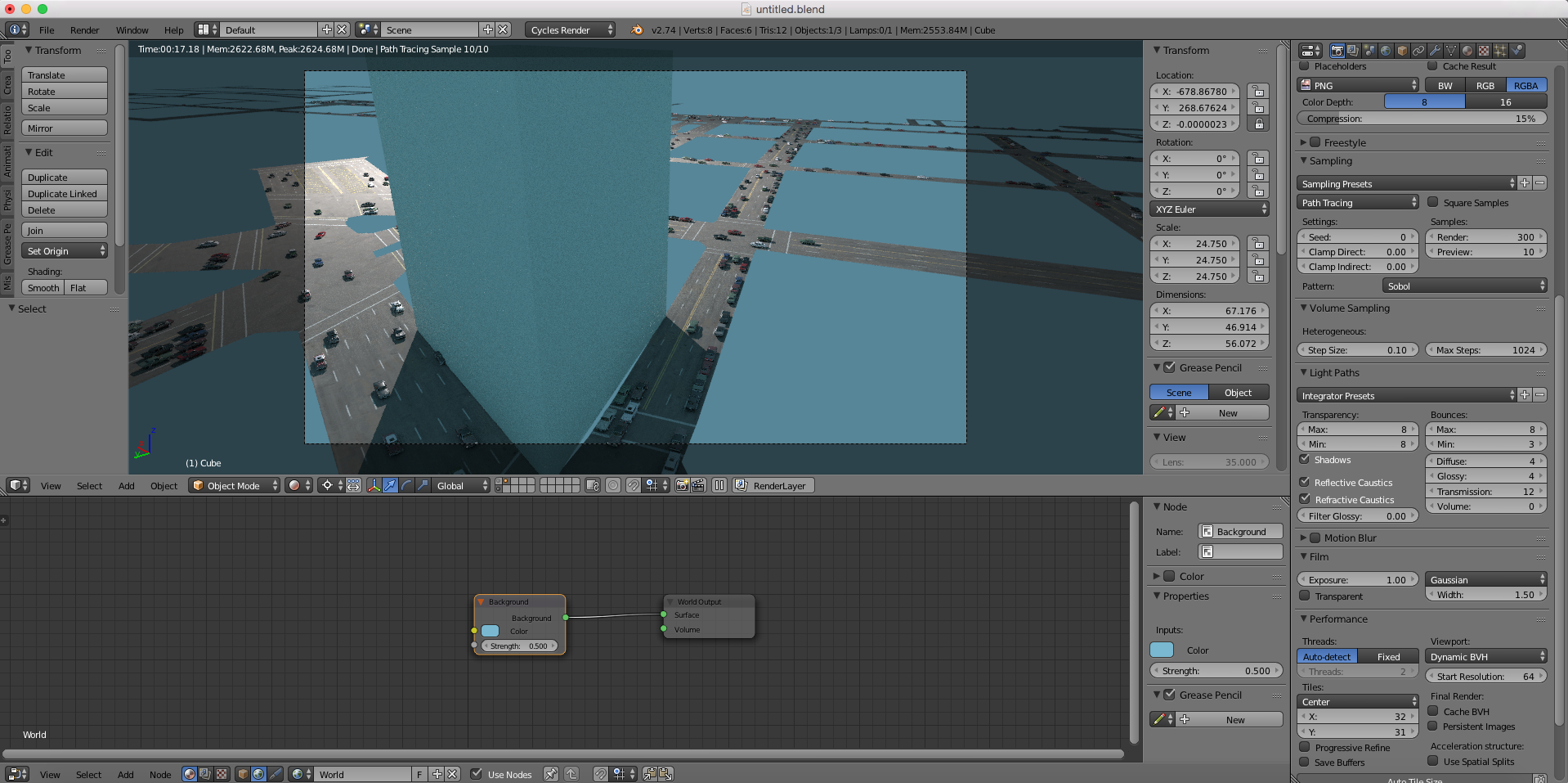 Mi pregunta es: Hay alguna manera con Cycles (composite) de crear el blur que crea el cielo sobre los objetos?