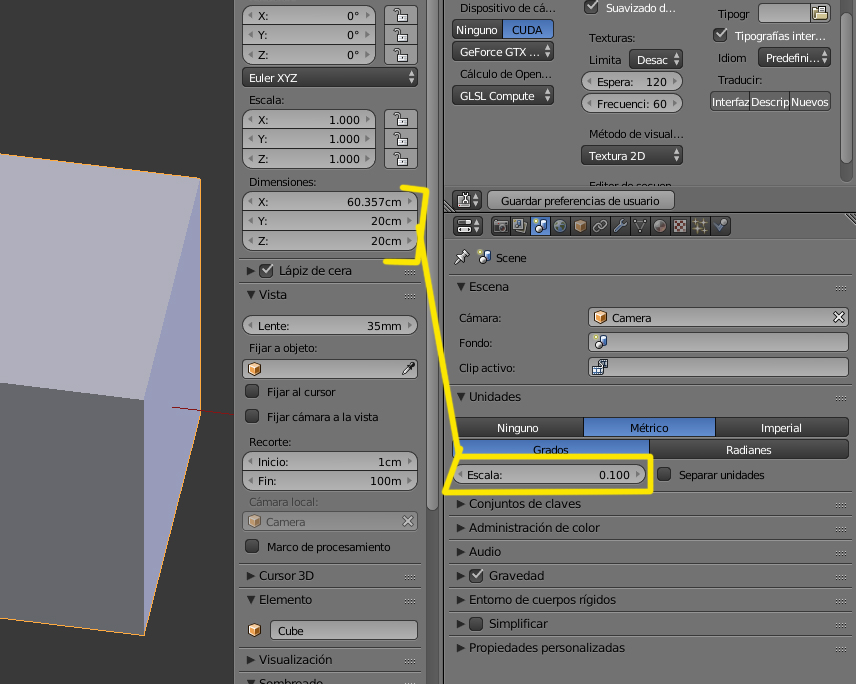 Tengo una duda con el tema de las medidas en Blender. Paso las unidades al sistema métrico y como veis el lápiz de cera me da una medida de 7;73 centímetros, la medida que aparece a la derecha me dice que x mide 11;10 centímetros. Después, si lo abro en Rhinoceros, me dice que mide 11;10 milímetros. No me extraña que algunas veces al abrir algo en Rhinoceros ni siquiera lo encuentre. ¿alguien puede decirme que me está sucediendo en ambos programas?