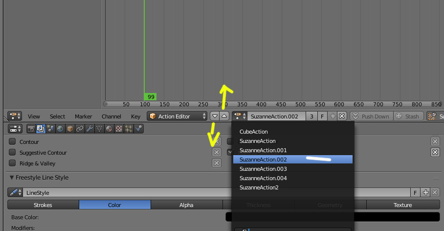 Como veis en imagen, quisiera saber la utilidad de esas flechas, ya que, casi siempre están desactivadas cuando uso el action editor del Dope Sheet. Gracias y un saludo.