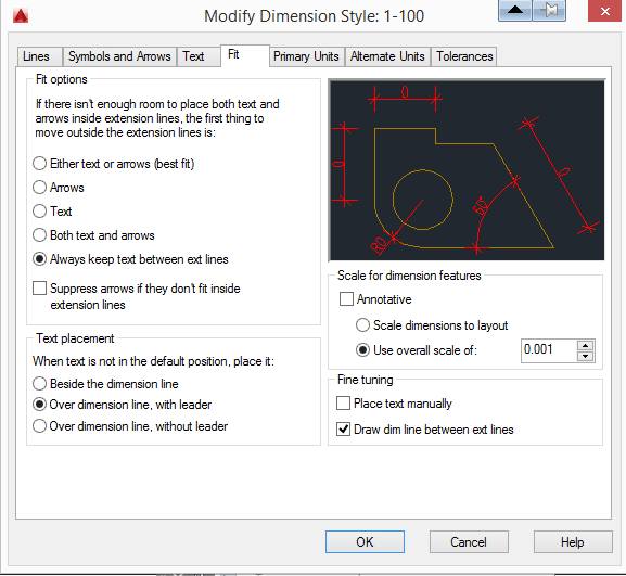 Lo hago cien veces más pequeño y todo se corrige excepto que el tamaño de las flechas, líneas y número de las cotas es desorbitado formando un borrón en su conjunto.