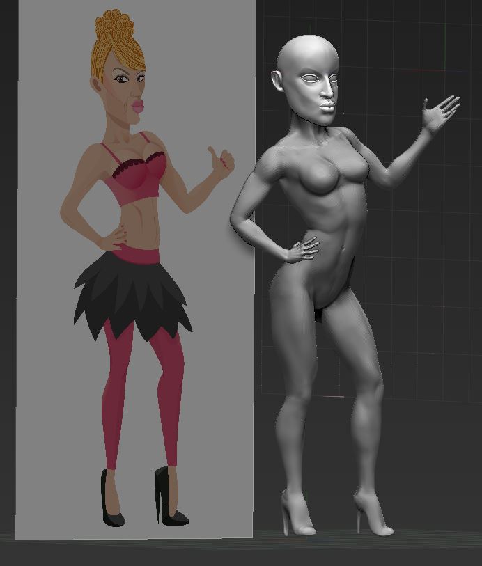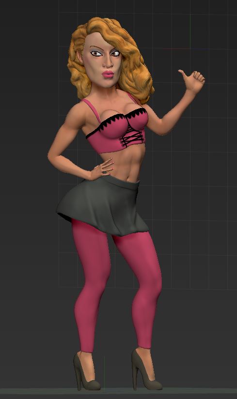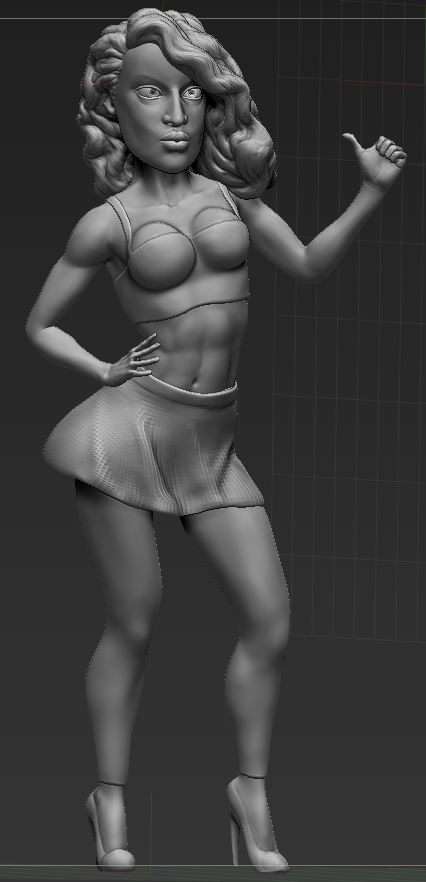 Este es un proyecto que hice para un amigo. Se trata de un personaje cartoon en 3d de una amiga para imprimir en 3d. Versión 2d realizada por mi mujer y 3d por mi en ZBrush.