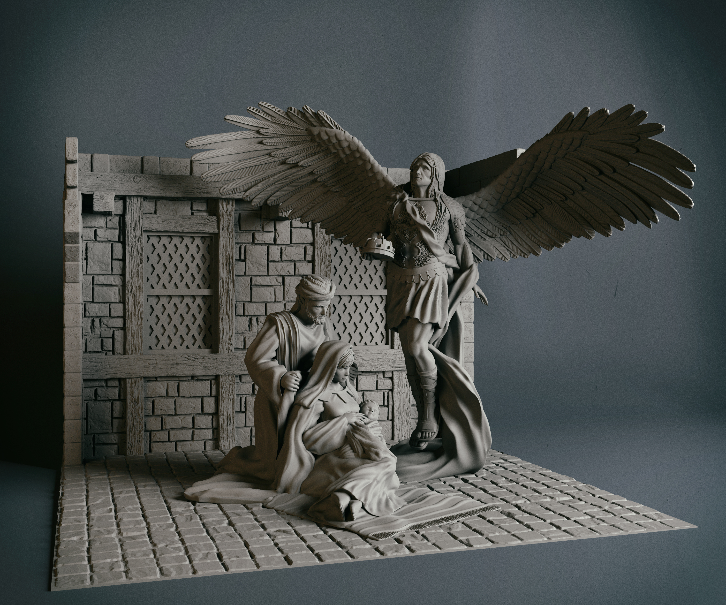 Muy bonito, me gusta la composición, tal vez hubiera puesto el ángel más alto, o mirando más hacia arriba.