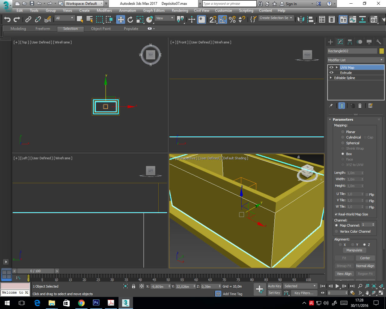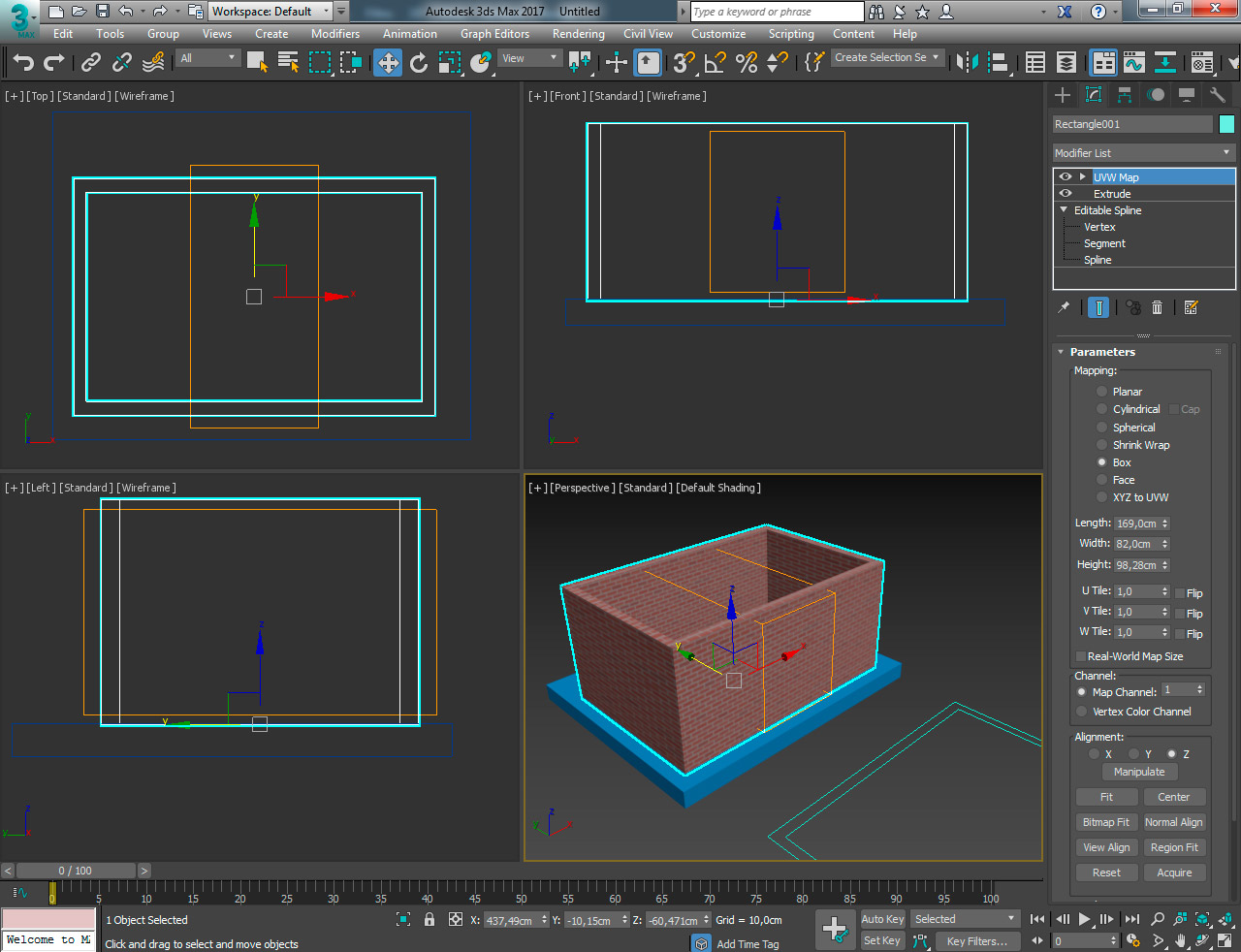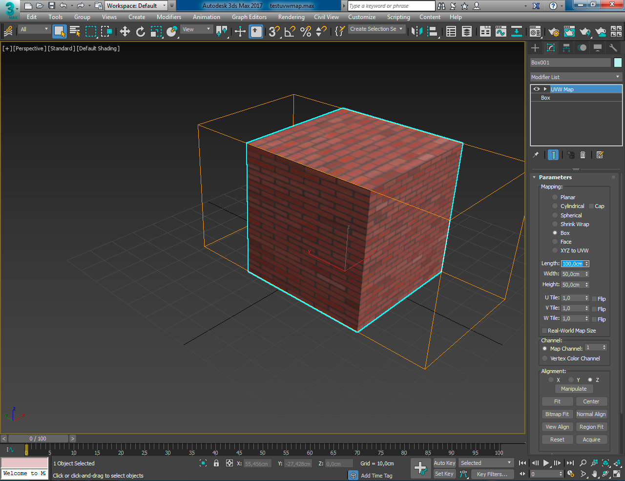Hago un cubo, le meto un material, le meto un modificador UVW Map, le pongo que sea box y no tiene sombreado ni el UTile ni el Length ni nada.