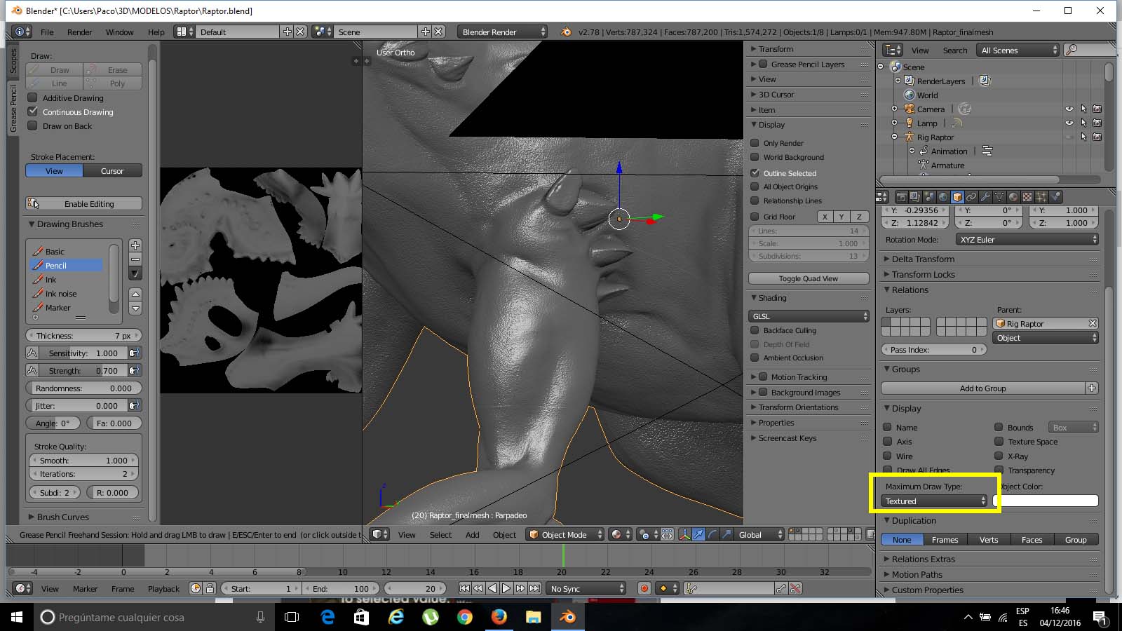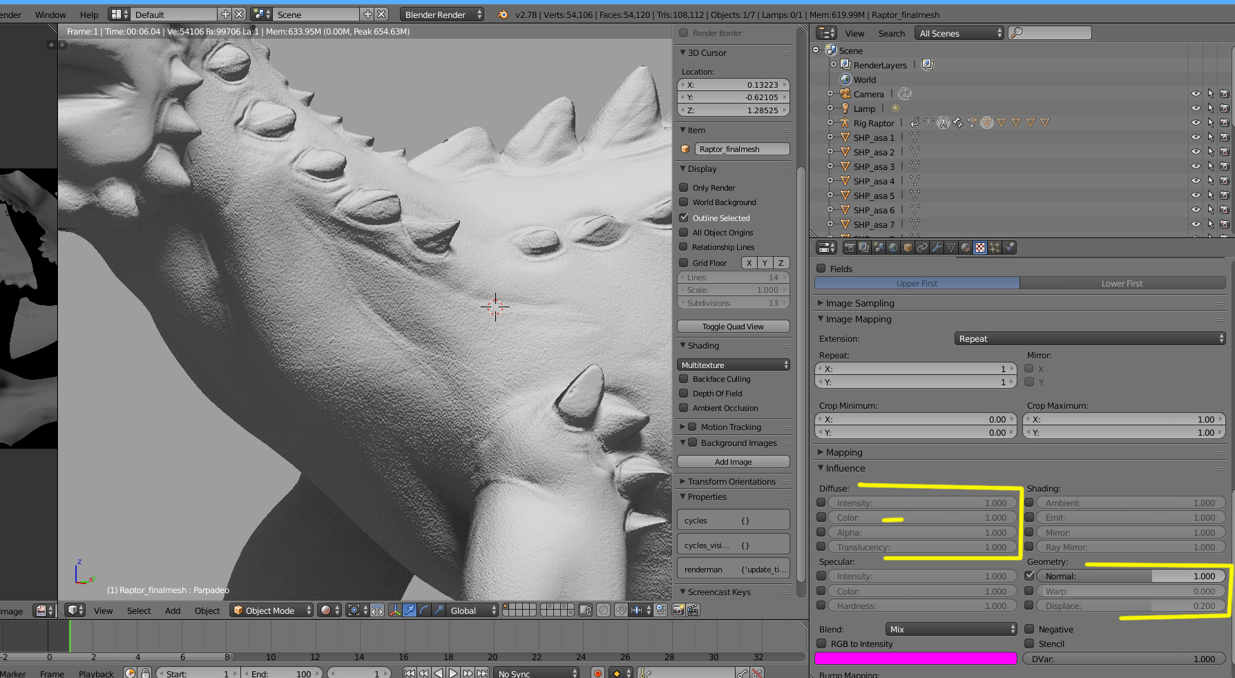 Hola, estoy siguiendo la serie de videos Creature Factory 2 de la Blender Cloud. Voy por la creación del bump map.