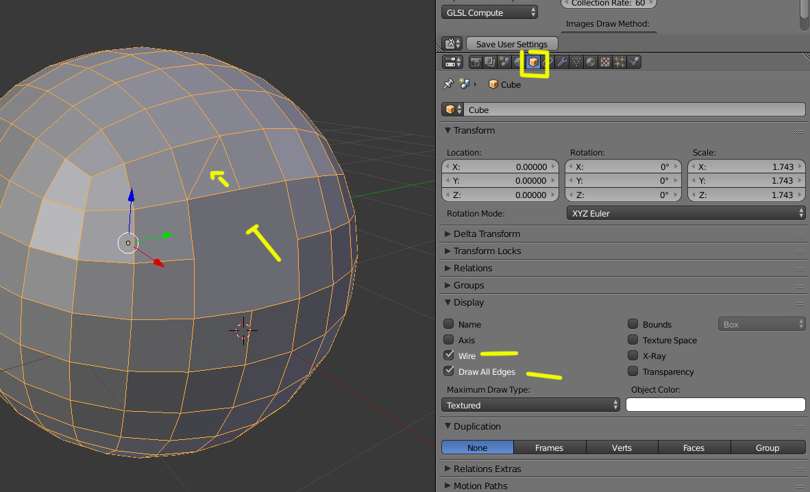 Para poder ver la malla en modo wire en el visor, tienes la opción de Object > Display, donde debes de activar tanto el Wire, como el Draw all edges (todas las aristas) pues a veces si alejas el objeto, no te saldrían todas esas aristas si no está activado eso.