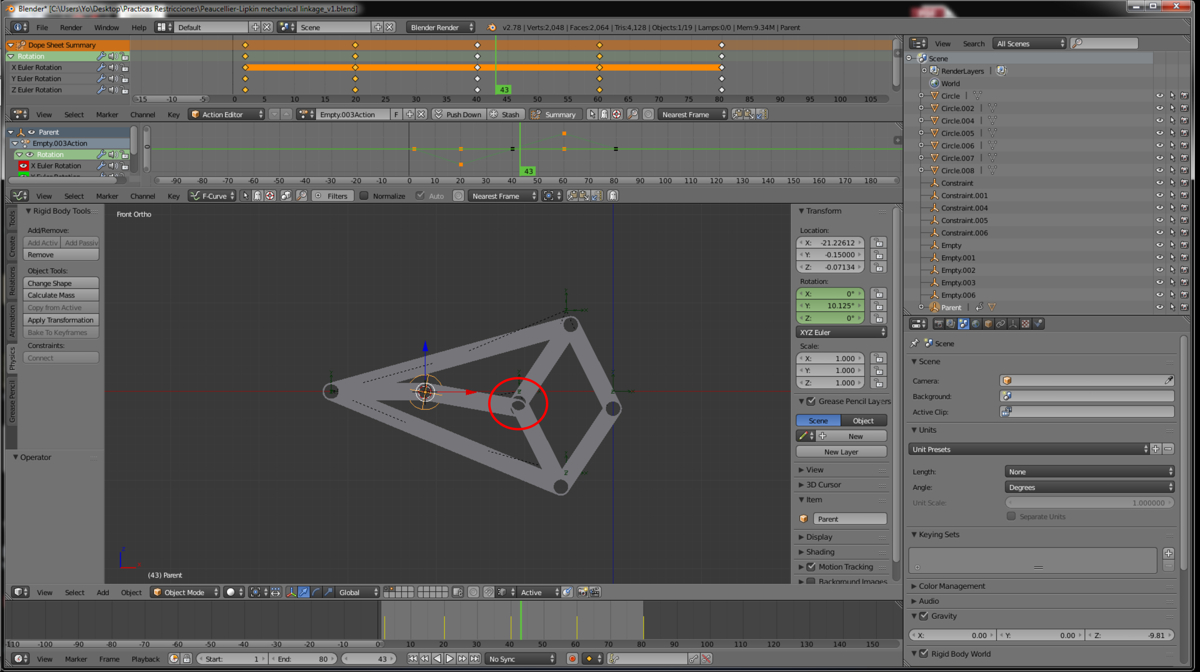 El problema creo que lo tengo en que de forma inconsciente comparo el funcionamiento de las restricciones de Blender con las de programas paramétricos como Solid Edge, solid works, inventor, en los que estos procesos son mucho más sencillos y eficaces, en el caso de la mecánica claro. Pero me sorprende mucho que, con la capacidad de Blender para realizar simulaciones de fluidos, física de partículas o crear pelo, sea tan complicado usar las restricciones para mecanismos relativamente sencillos. Un saludo.
