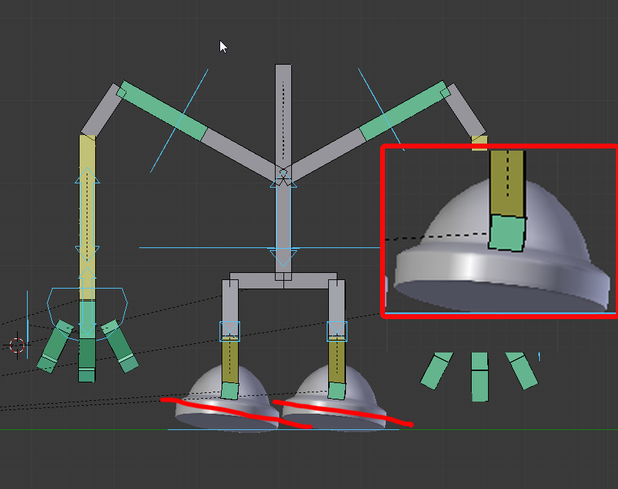 Hueso del pie respeta el giro y se acomoda a la posición correcta, pero pierdo el control de la cinemática inversa.