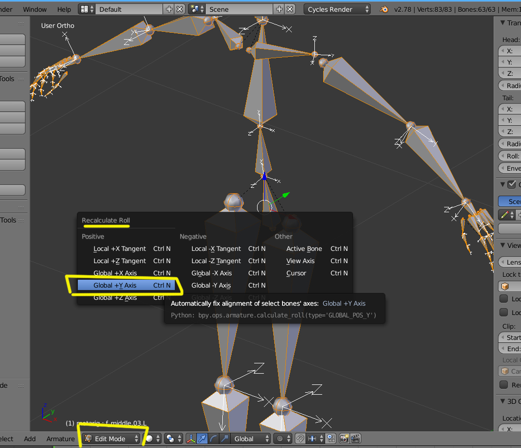 Antes de poner cualquier restricción, es bueno alinear todos los huesos o lo que es lo mismo, recalcular roll. No es que sea necesario, pero siempre es mejor tener los huesos mirando para él mismo sitio, que no cada uno a su bola.