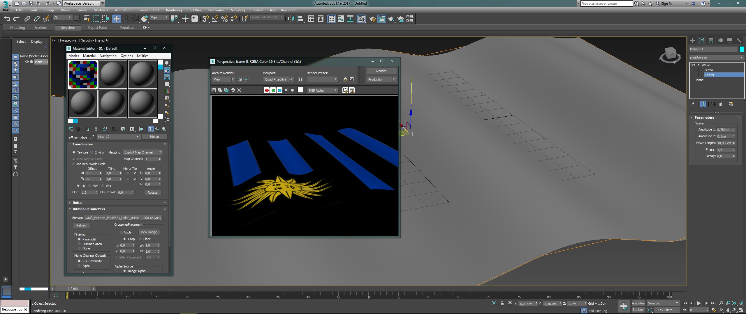 O, simplemente hacer una textura con las bandas azules y el sol, y las partes blancas en negro; y así quedaría para luego aplicar el modificador Wave?