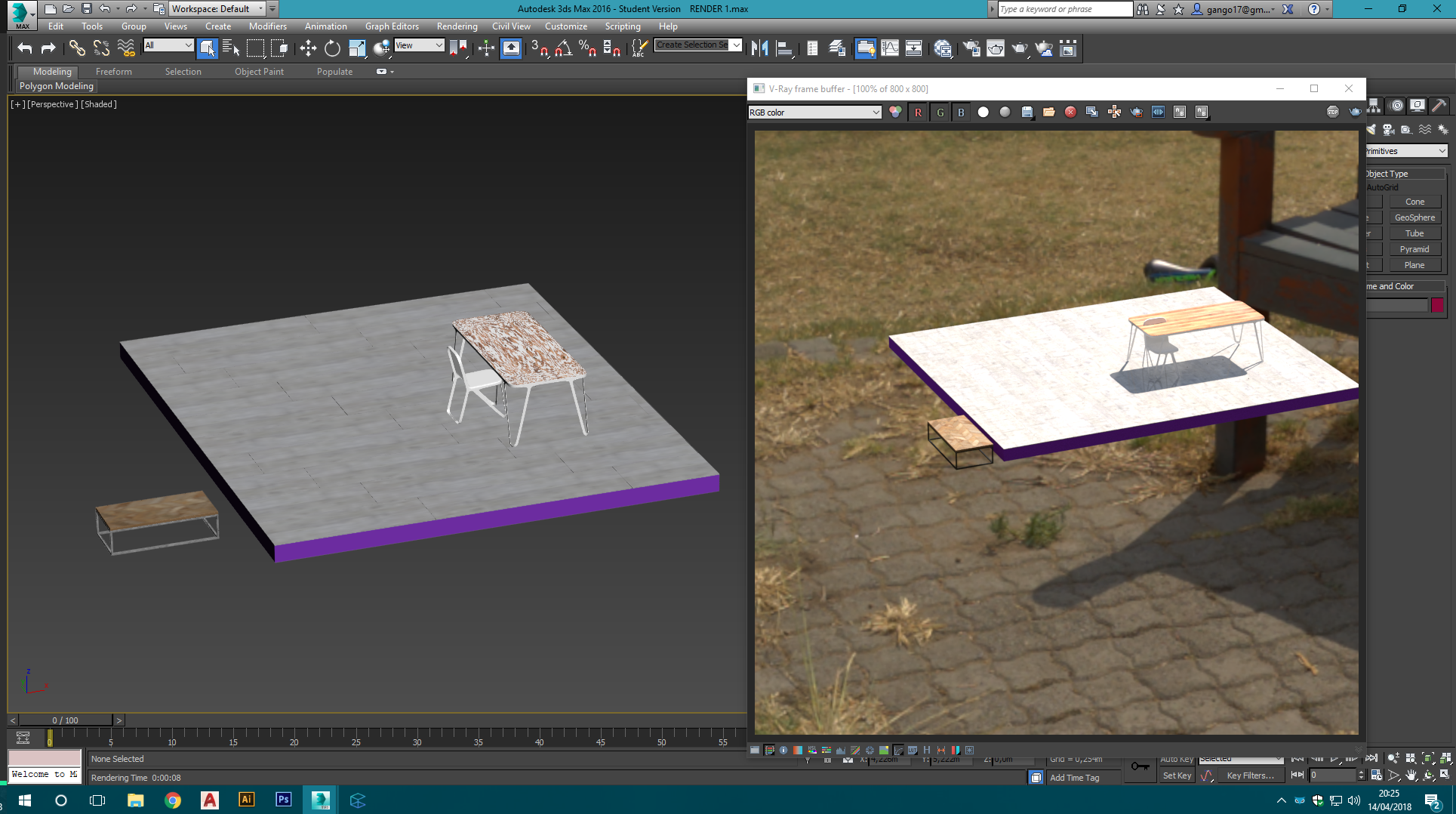 Me he instalado el 3ds Max 2016 con el Vray y todo perfecto, lo abro, trabajo, monto la escena, pero al tirar el render los objetos salen renderizados en una posición diferente a la de la vista en perspectiva. Si pongo una cámara el render me sale todo opaco. He estado buscando en foros, pero nadie habla de este tema.