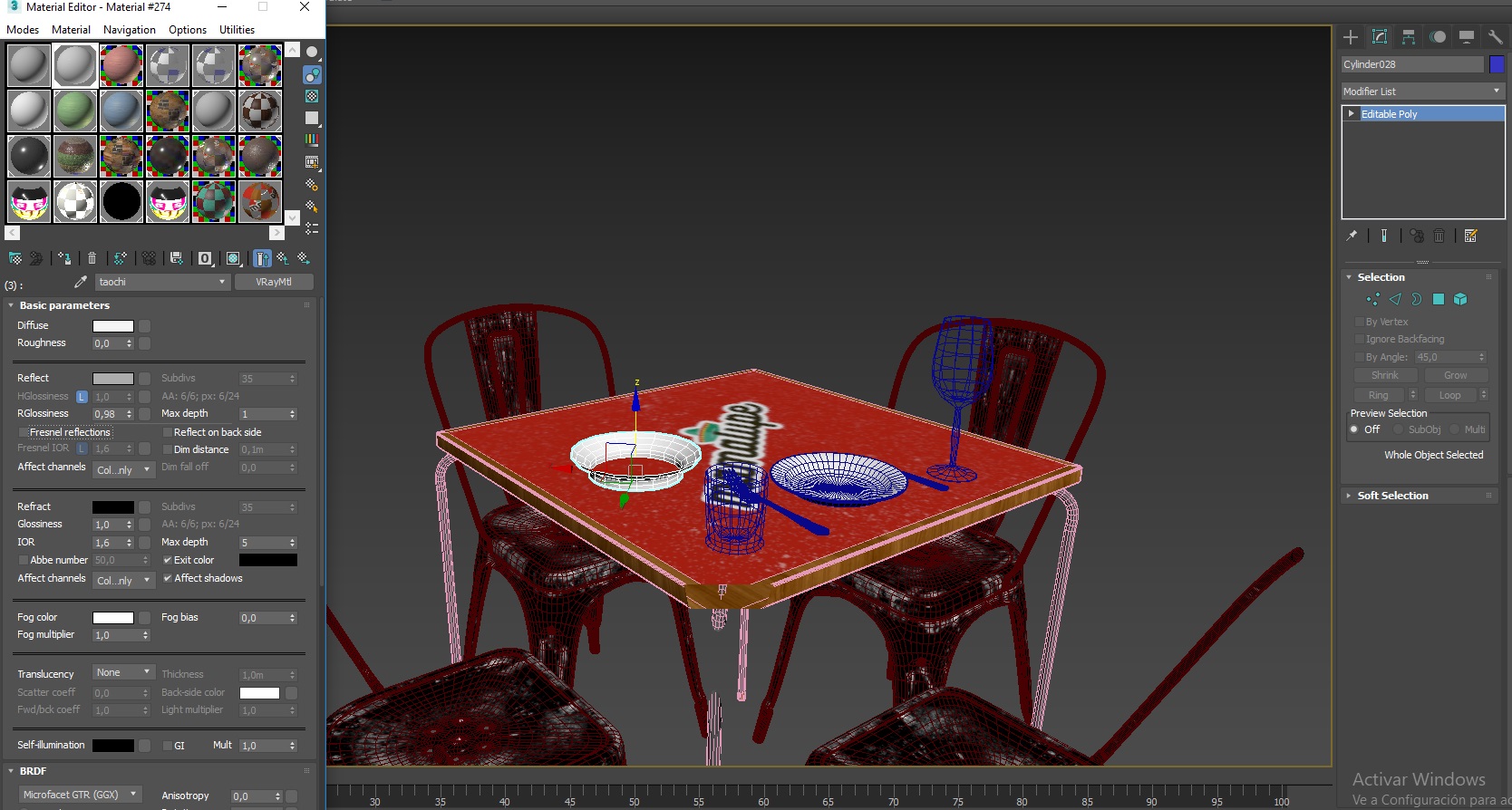 plato: tendra un 10% o 15% de reflejo con 0.98 de glosiness