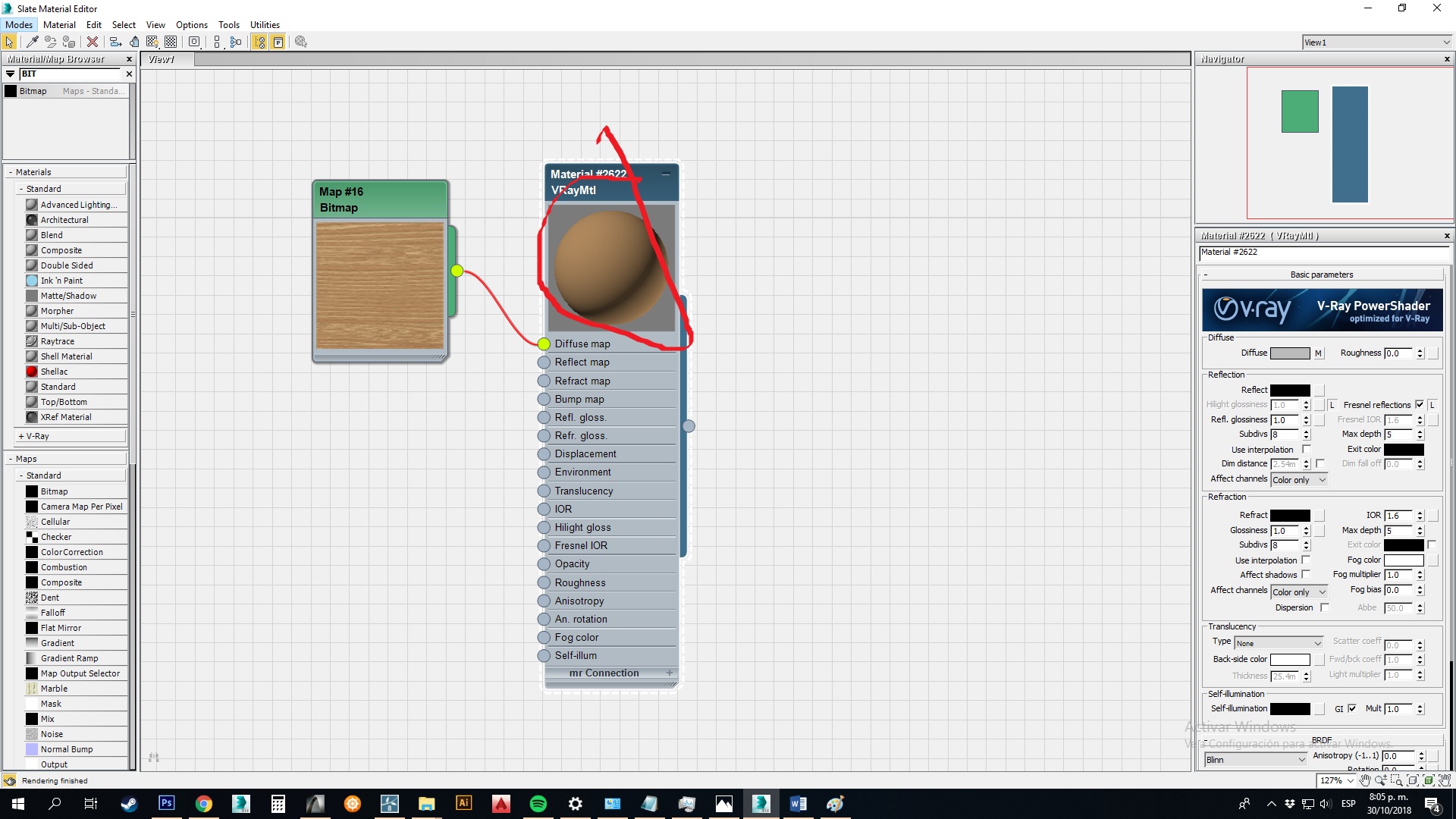 Cargo la imagen en el bitmap, cuando lo vinculo con el difuso del Vray material cambia su textura, necesito ayuda se los agradecería.