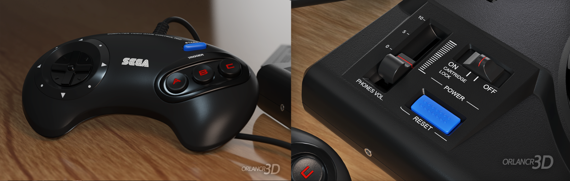 Buenas les muestro mi modelo del Sega Megadrive 16 Bits. Fue creado en Blender 2.79B, renderizado en Cycles 300 samples con Denoiser activado y Film color. Espero les guste. Saludos.