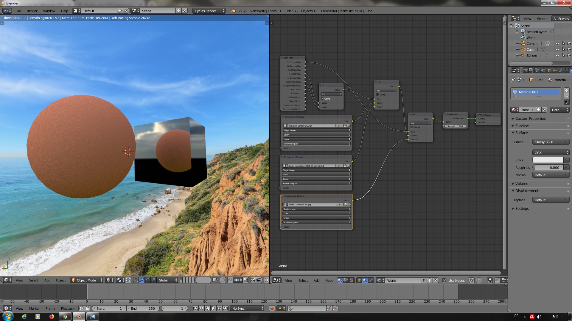Soy nuevo en Blender y en mis primeras escenas al crear algún tipo de material como metal o vidrio siempre me refleja el HDRI que haya puesto de fondo, lo que me gustaría es que se viera el HDRI, pero que el material no se viera alterado. Sabéis si es posible? Estoy usando la versión 2.79 Muchas gracias.
