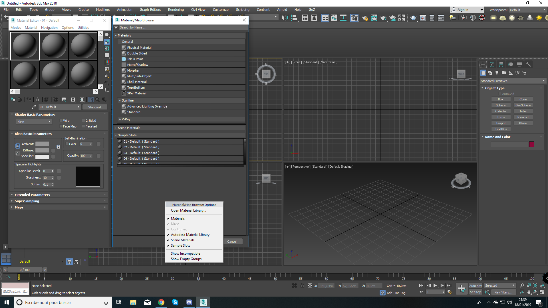 Hola Karras, yo utilizo max 2010, pero no creo que exista mucha diferencia al 2013 en su modo compacto. Cuando le das a get material se abre el buscador de materiales y mapas, puedes buscar los materiales en la librería o clic en scene y te debería aparecer una lista de todos los materiales dé la escena y a qué objetos están asignados. Si esto no sucede es porque algo anda mal en el programa. De todas formas, puedes recurrir al cuentagotas: activas cualquier esfera, activas el cuentagotas (junto al nombre del material), lo sitúas sobre el objeto que contiene el material y otra vez click. Todo esto en la vista perspectiva o cámara. Debería aparecer el material del objeto. Si no es así es porque definitivamente algo va mal. Saludos.