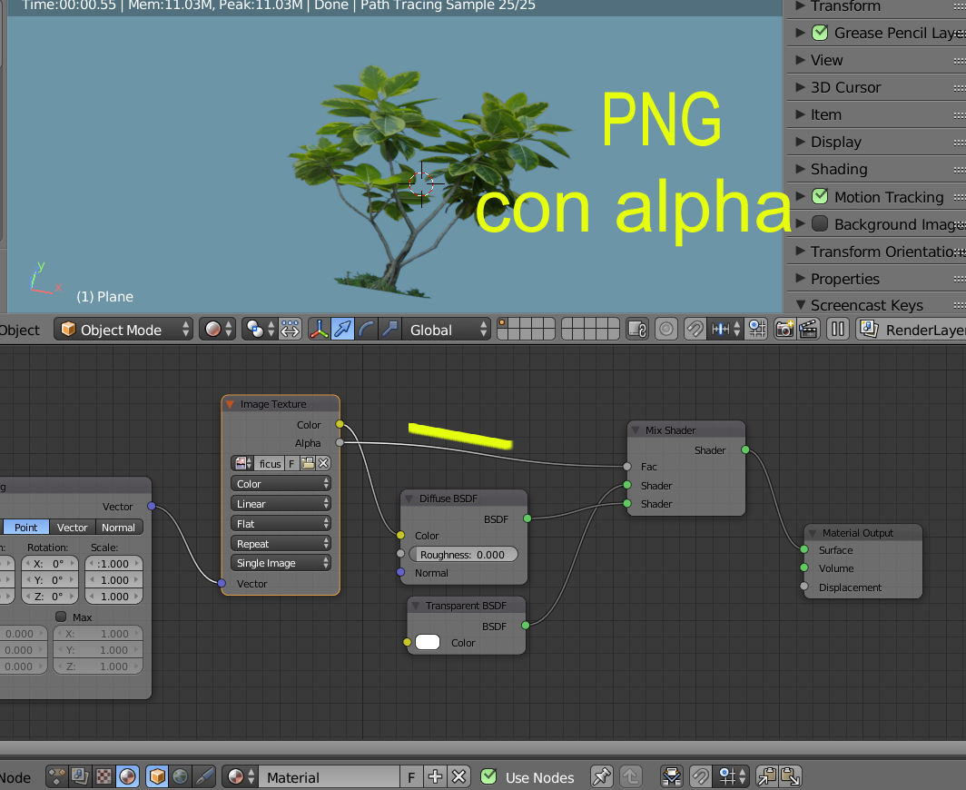Hola. Creo que al aplicar una imagen como textura se puede hacer que el color negro sea transparente.