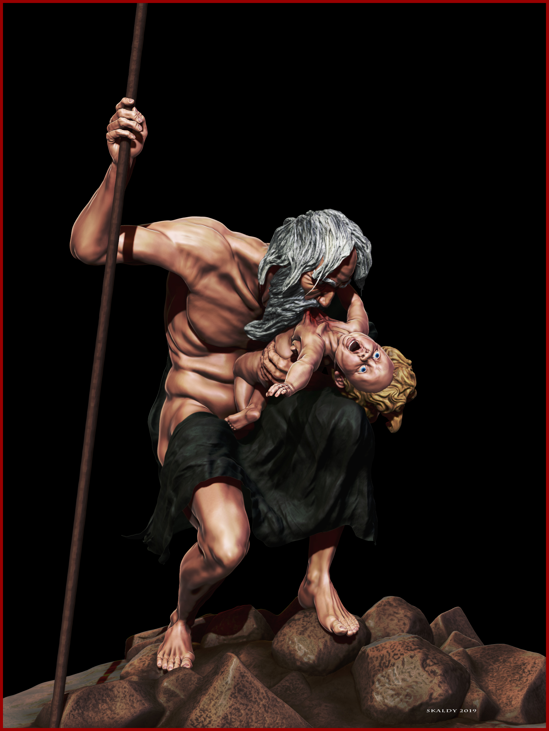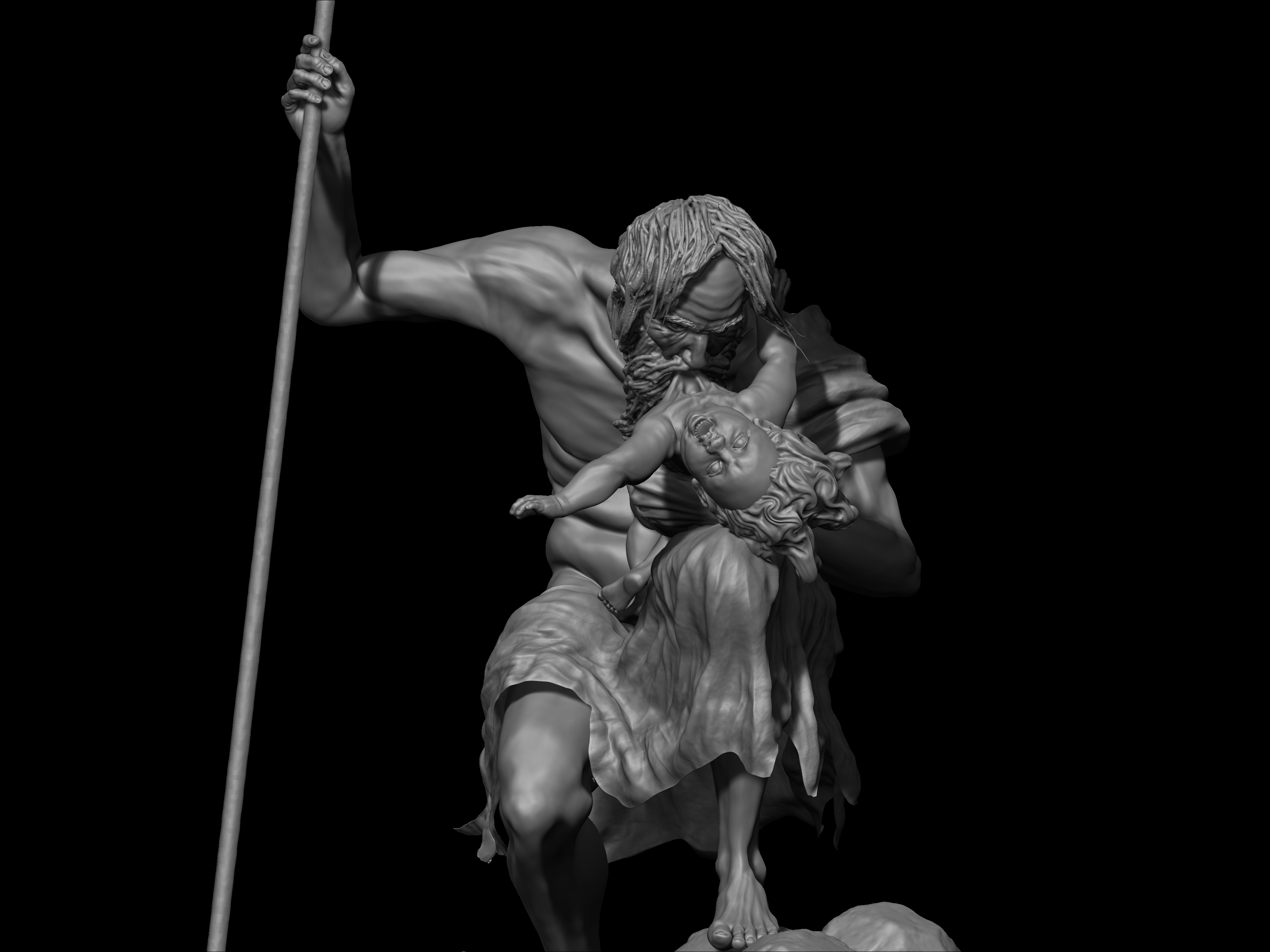 Una escultura qué representa a Saturno en el momento de devorar a uno de sus hijos, al a ver sido advertido que en el futuro sera destronado por uno de ellos.