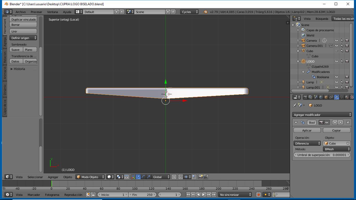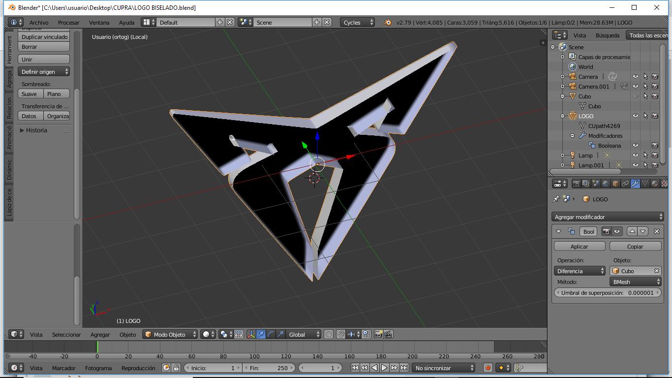 - sobre un CUBO crear la forma qué le restaré al LOGO para darle el BISEL, (adjunto imágenes)