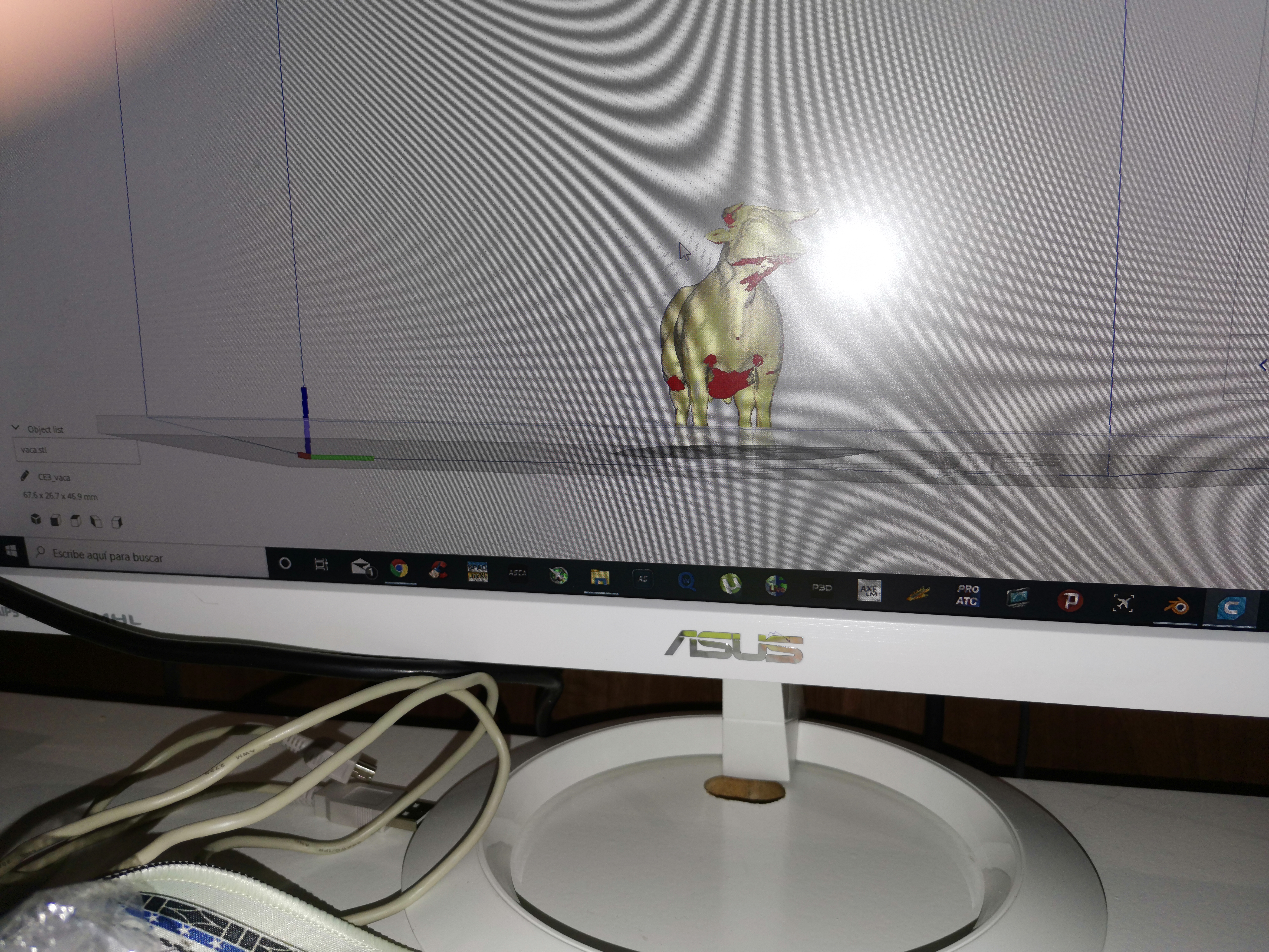 El problema es que me imprime esas zonas rojas encima de la cama. Interpreta que esas zonas van pegadas a la cama, no a la altura correcta. Como configuro cura, o como posicionó la vaca.