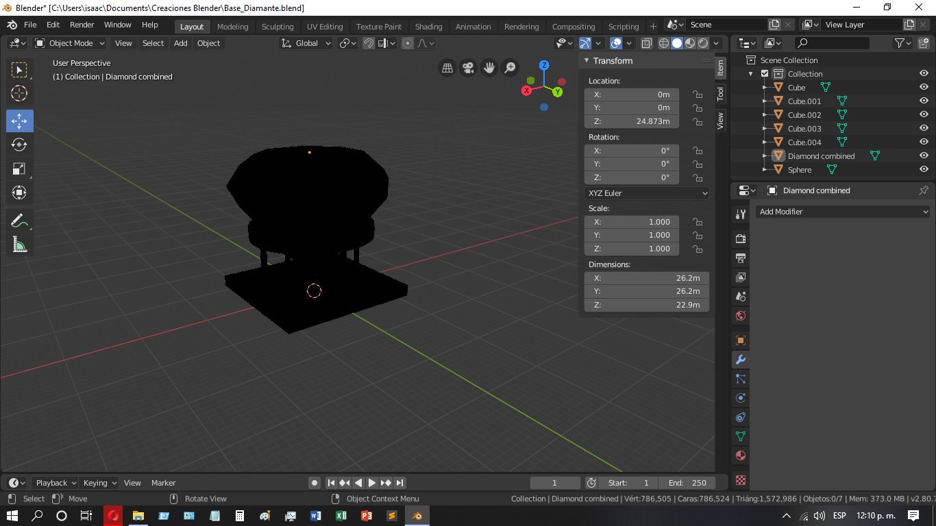 Estoy haciendo un modelo para imprimirlo en 3D, lo exportaré en STL. Ya antes e hecho esto y es la primera vez que ocurre. Creo que es un Bug ya que únicamente guarde el proyecto, no rendericé ni nada más solo di CTRL+S y aparte al cerrar y volver a abrir ya salió normal, seguí editando volví a guardar y ya no se ponía en negro como en la imagen.