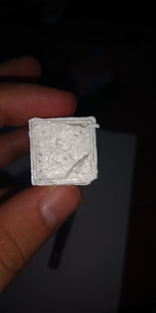 Aquí empecé a imprimir bien pero en la última capa tuve problemas, usé una boquilla de 0.8.