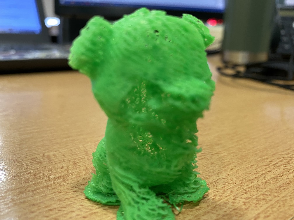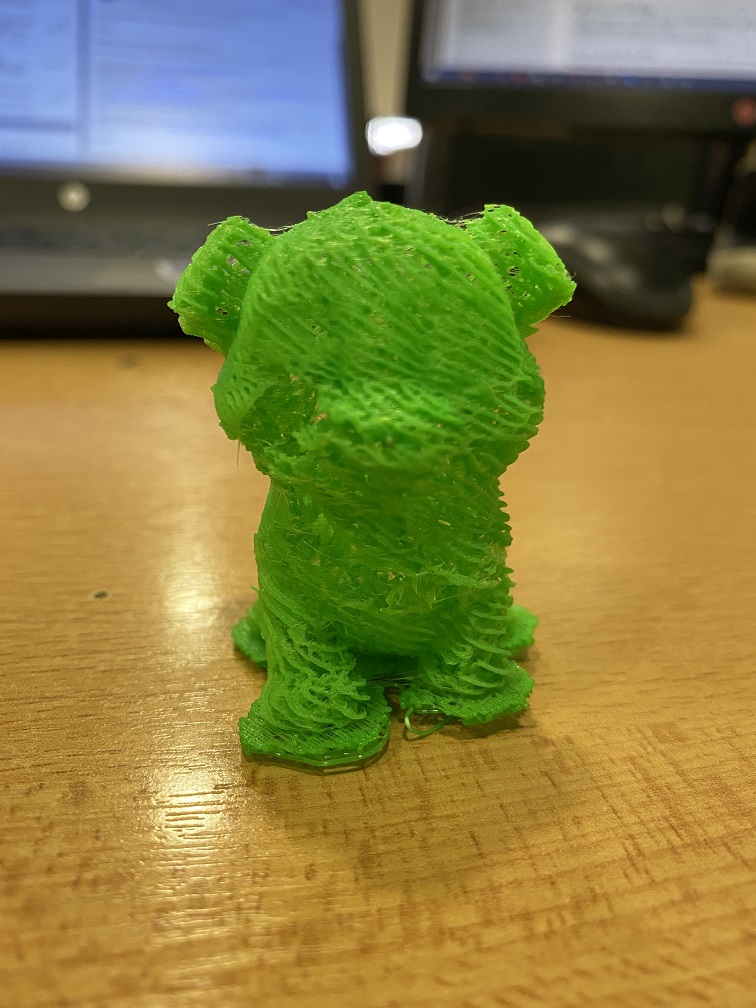 Respecto de las imágenes que adjunto, el perrito es el que trae la Ender, realicé la impresión sin realizar ninguna modificación y obtuve lo de la imagen :(