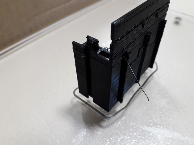 En principio empieza bien, pero cuando lleva menos de la mitad de la geometría (con soportes incluidos, empieza de nuevo a patinar y hay algunas de las capas de impresión que no las hace bien, por lo que la pieza se debilita y parte.