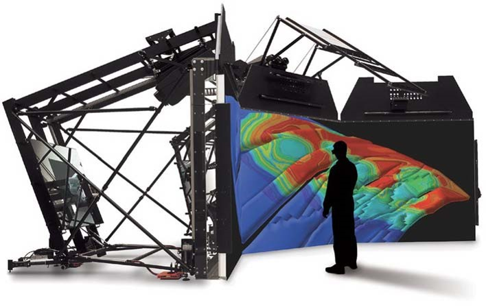 Finalmente, también podemos mirar hacia el futuro y pensar en los últimos avances en el campo de la simulación, pudiendo visitar un entorno virtual con un sistema cave, donde, gracias a un sistema de proyectores y a unas gafas polarizadas, puedes realizar una inmersión total dentro de una escena e interactuar con los objetos; y todo esto con un nivel de calidad extraordinario de las imágenes.