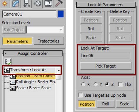 Para ello disponemos de distintos procedimientos: desde la animación simple de llave a llave, donde le decimos en cada momento qué y hacia dónde debe mirar la cámara; pasando por el uso de controladores que nos facilitan un poco la tarea al darnos la posibilidad de utilizar splines como recorridos y controladores que observen siempre al mismo objeto, para así despreocuparnos del proceso de ir añadiendo llaves y para que la cámara vaya en correlación con el movimiento del objeto en cuestión.
