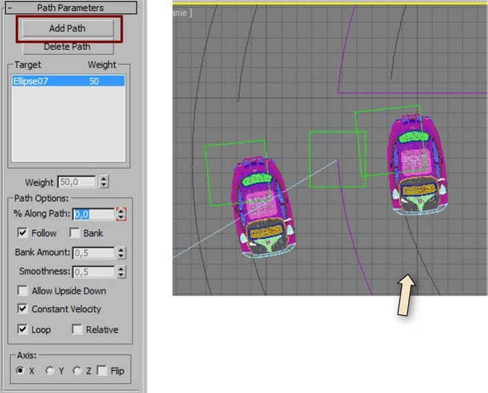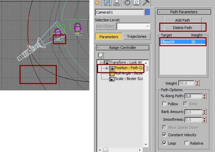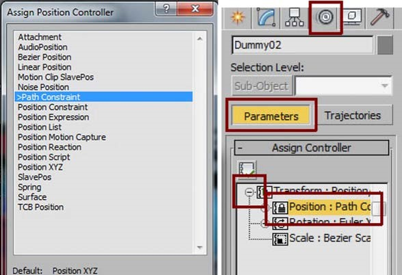 Mover una cámara a través de un recorrido (Path constraint) ayudantes/dummies