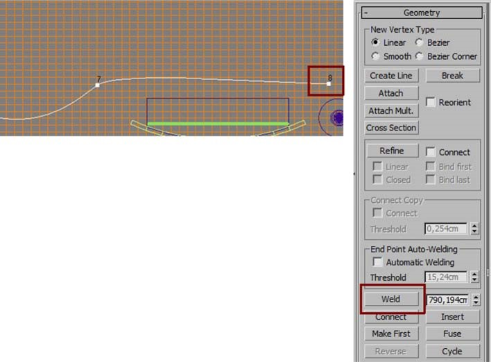 Para cambiar dicho vértice al último, y así hacer que el recorrido de la cámara sea inverso, debemos editar el spline, entrar en modo de selección de vértice, seleccionar el último vértice de la línea y hacer clic en la opción Make first.