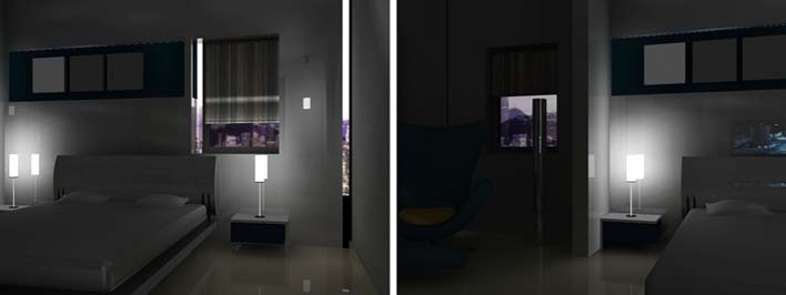 3) Seguidamente, la colocamos a una altura un poco por encima del suelo e inclinada un poco hacia arriba. Esto hará que el efecto sea de grandiosidad de la habitación.